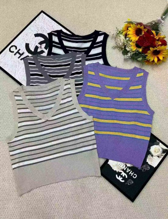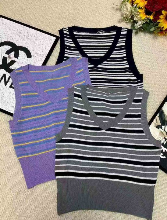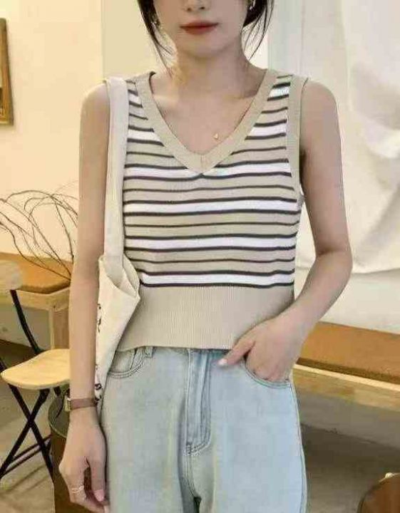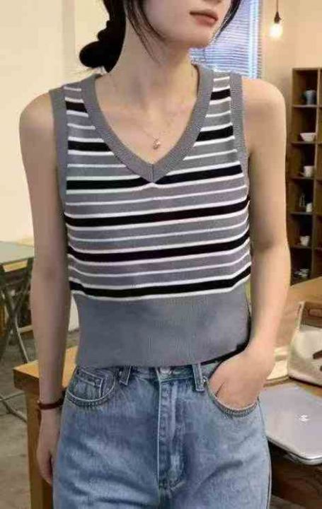 春夏季新款辣妹甜美撞色条纹冰丝针织马甲背心,独立包...
