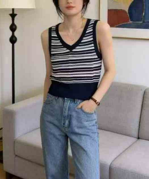 春夏季新款辣妹甜美撞色条纹冰丝针织马甲背心,独立包装,均码年龄柔软舒适顺滑有弹力,458件,全清4.9元超低价秒杀!分货加一!