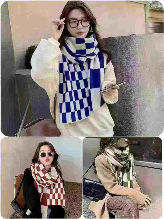 3520件棋盘格保暖百搭针织围脖。图片款。手感柔软,品质好。长160一