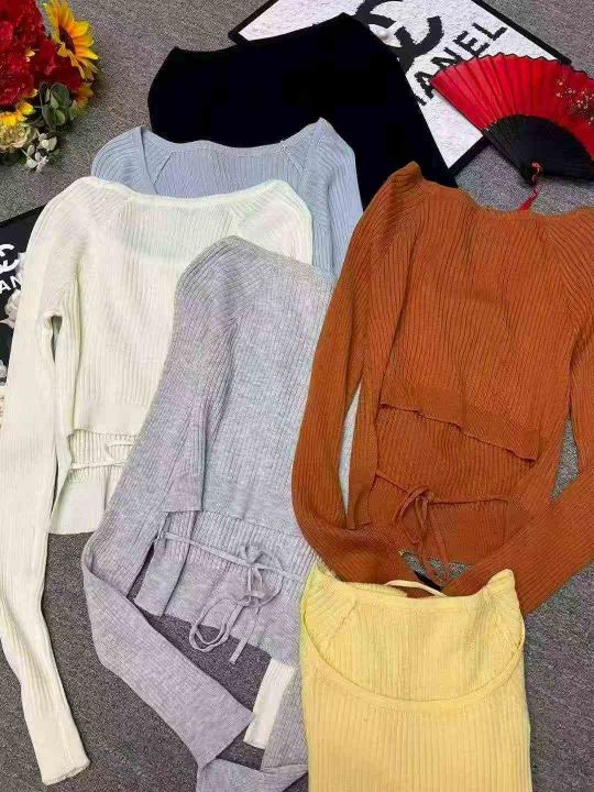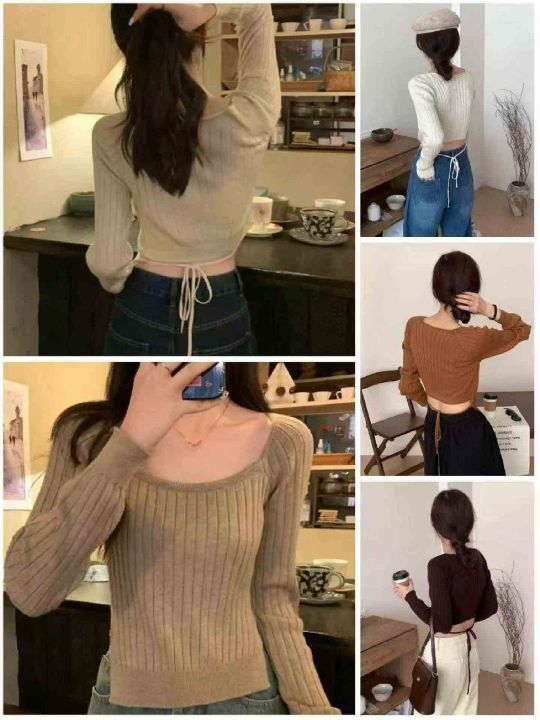 春秋新款法式方领前长后短腰间系带设计感后背露腰短款长袖针织羊毛衫,独立包装,均码面料软糯舒适弹力大,348件,全清5.9元超低价秒杀!分货加一!