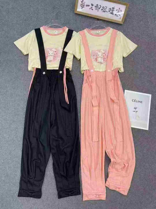 小众港风套装149件12.8,棉质上衣➕华夫格背带裤,背...
