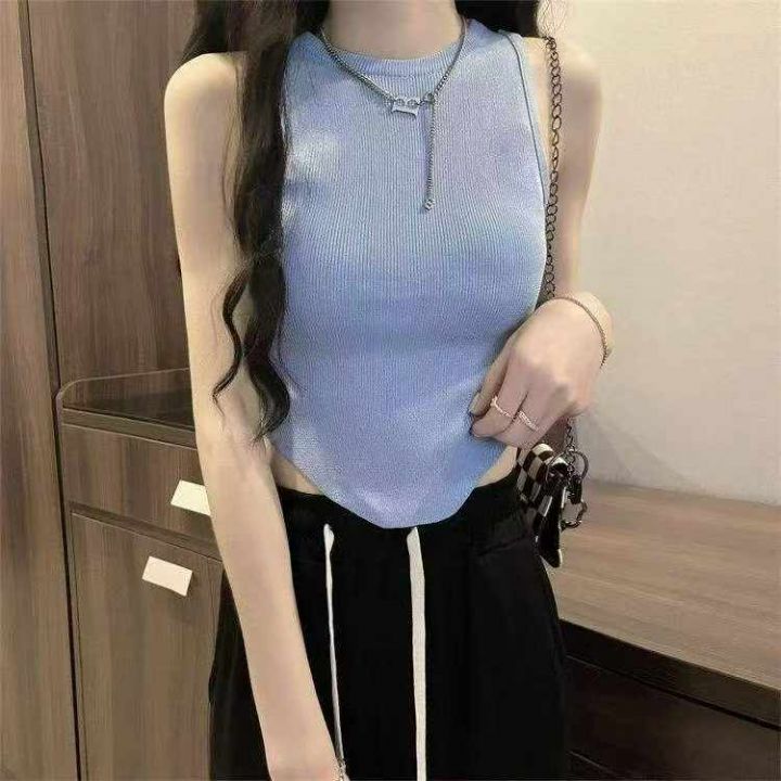 夏季新款不规则圆领弹力修身韩版百搭辣妹针织无袖背心...
