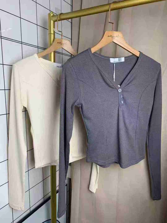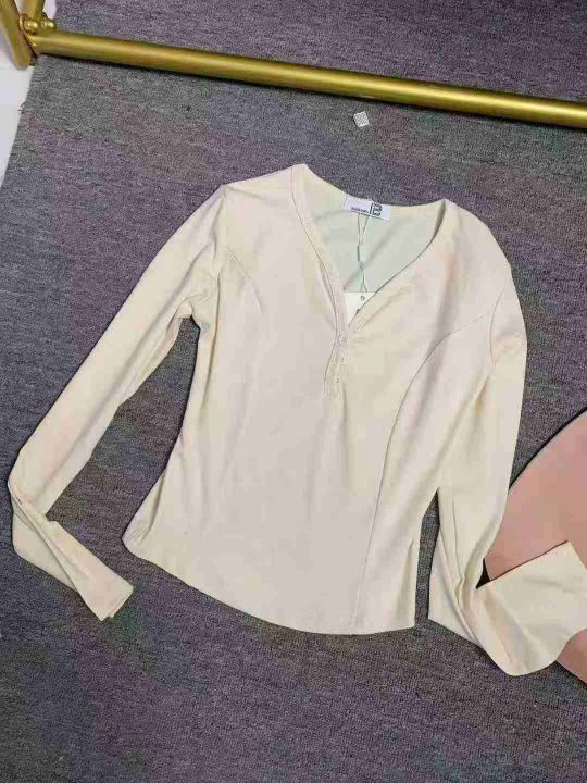 7.8清3500件纯棉辣妹靓妹修身百搭设计感显瘦V领长袖T恤女春秋季新款纽扣设计感打底上衣 码数均码 独立拉链包装 有吊牌 分货加一