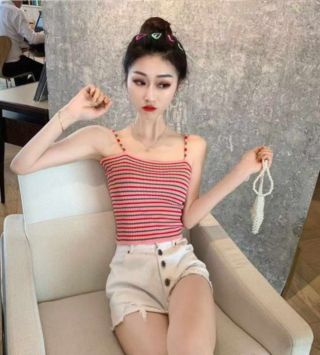 捡漏款,夏季新款撞色彩虹条纹小心机针织吊带,独立包...