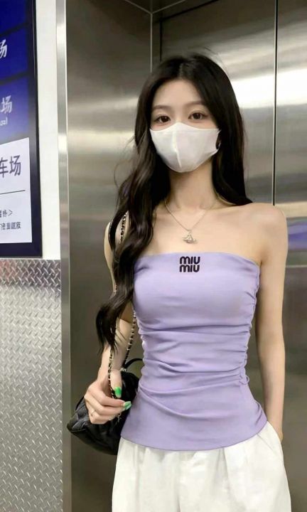 夏季新款性感辣妹纯欲风刺绣小标弹力修身显瘦针织抹胸...
