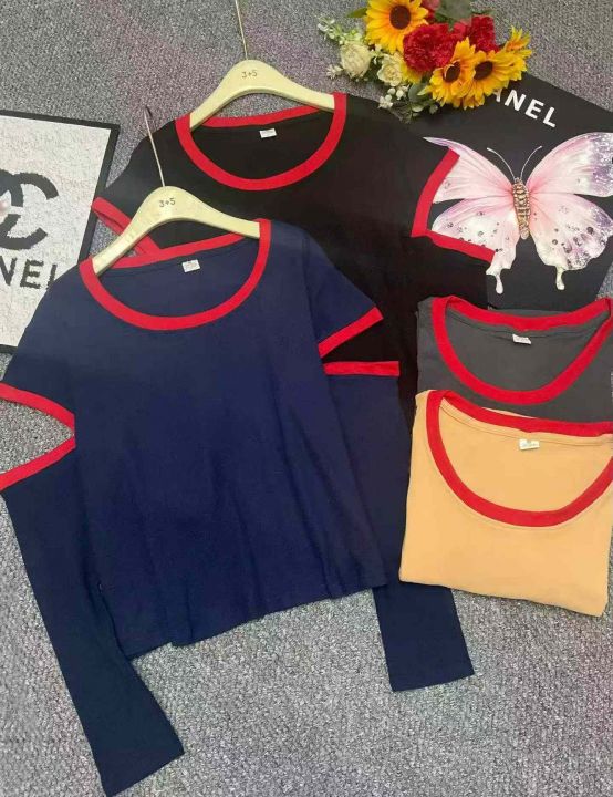 春秋网红新款撞色拼接漏肩韩系纯棉长袖T桖,独立包装,码数1-6码(相当于S--3XL码) 700件左右,腾仓库,全清2.99元亏本处理!