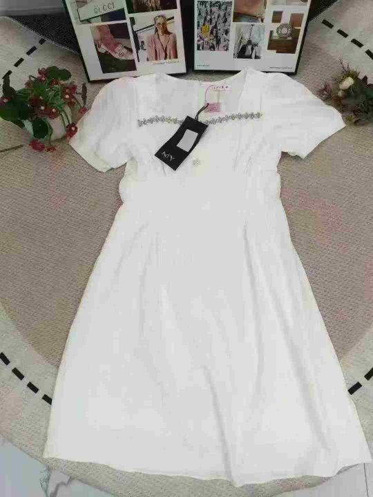 法式菱格镶钻方领高腰修身高级时尚连衣裙 数量112件 码数M--4XL 整款两个色 独立包装带吊牌 货品整洁质佳