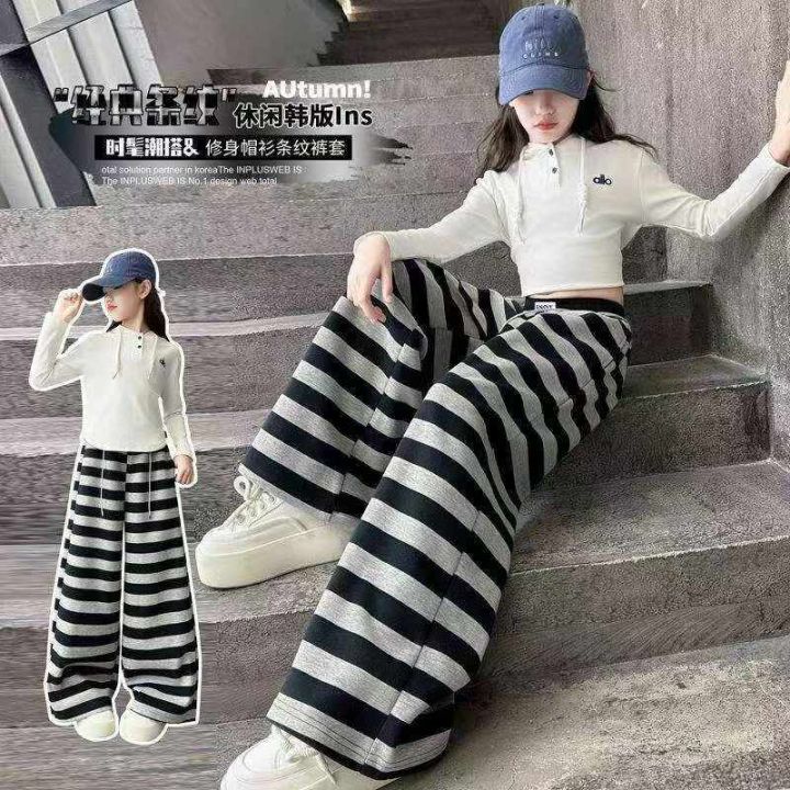 春秋新款撞色条纹男女童通知休闲斜纹棉卫裤,独立包装...