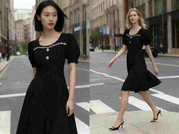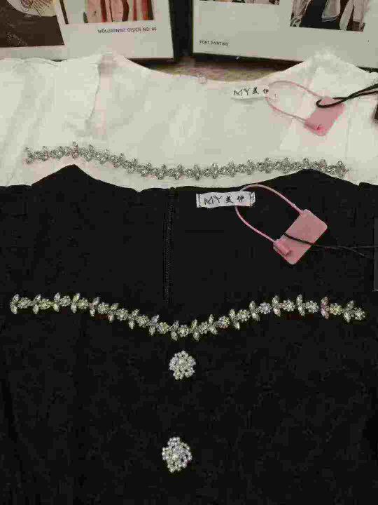 法式菱格镶钻方领高腰修身高级时尚连衣裙 数量112件 码数M--4XL 整款两个色 独立包装带吊牌 货品整洁质佳