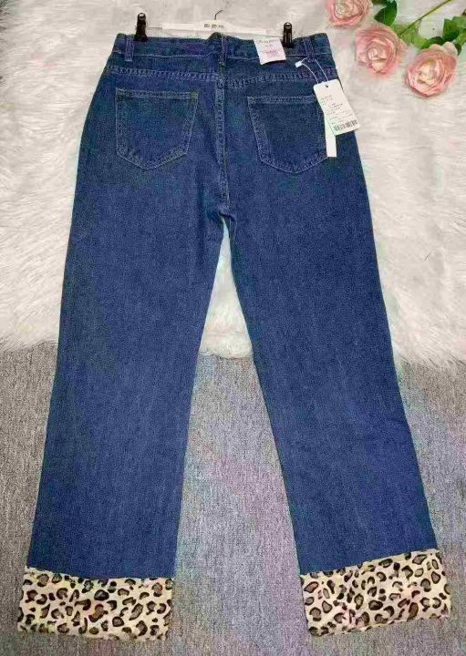 高腰牛仔直筒裤显瘦小个子加绒深蓝美式豹纹直筒烟管裤180件,独立包装带吊牌,尺码S~3XL,全清福利价9.9元