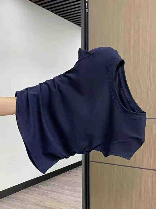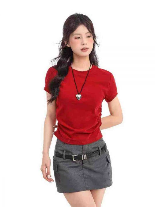 ☕️纯棉正肩圆领短袖t恤女夏设计感收腰显瘦弧形下摆...