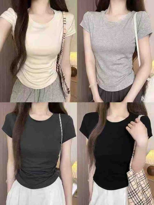 ☕️纯棉正肩圆领短袖t恤女夏设计感收腰显瘦弧形下摆短款修身上衣724件全清7.8元,分货8.8元,单款3色,独立包装,码数S到XL,纯棉高弹力辣妹T恤[庆祝][庆祝][庆祝]