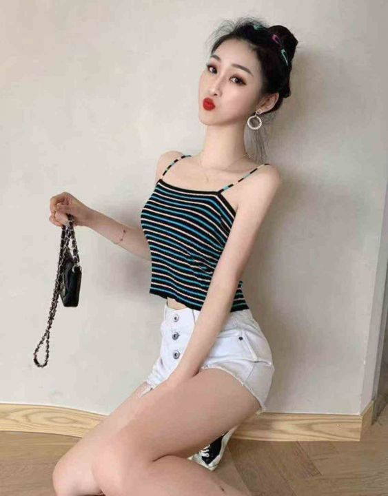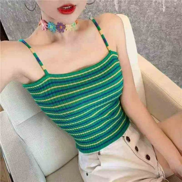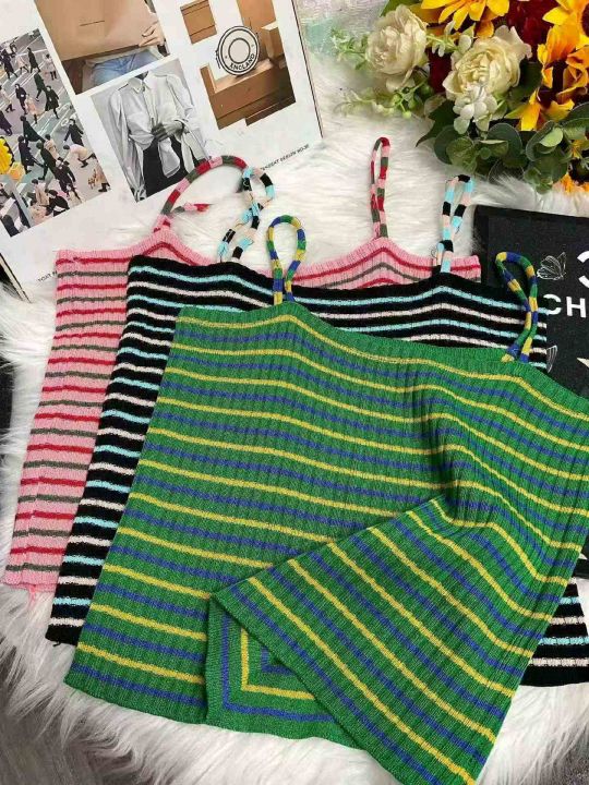 捡漏款,夏季新款撞色彩虹条纹小心机针织吊带,独立包...