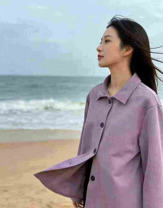 368件,秋冬新款丁香紫夹克外套休闲长袖立领中性风外...