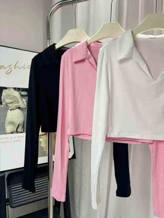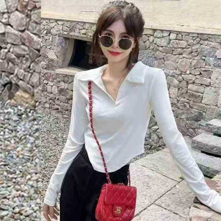 1200件韩系辣妹polo领显瘦露脐紧靓妹长袖T恤,尺码xs-...