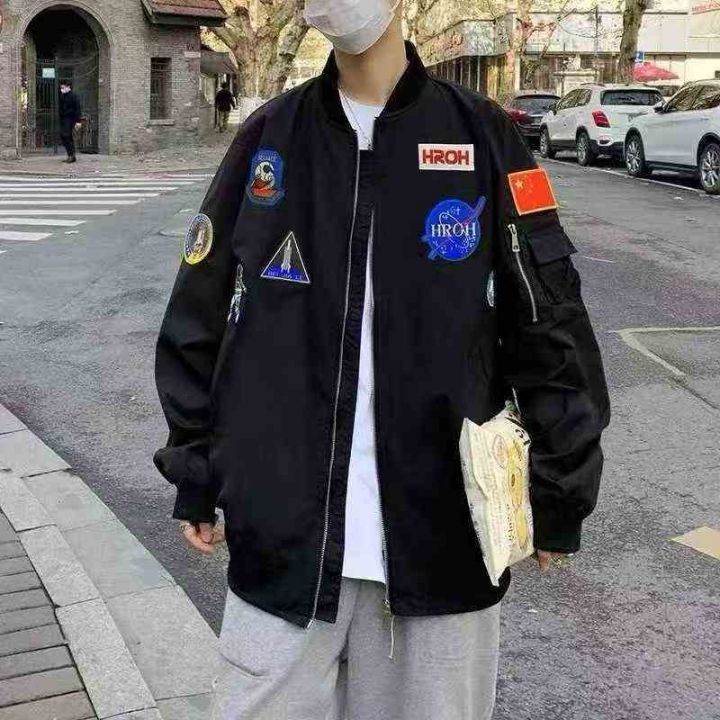 13.8清396件春秋刺绣拼接外套男ins高街百搭韩版痞帅港风飞行棒球服工装夹克...