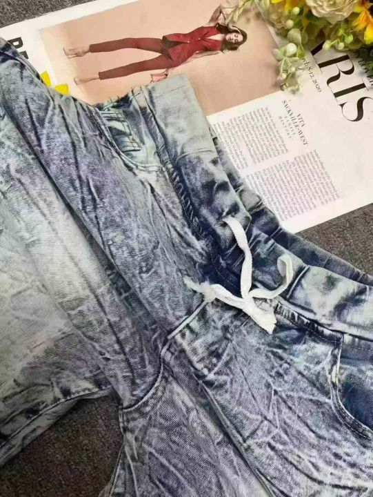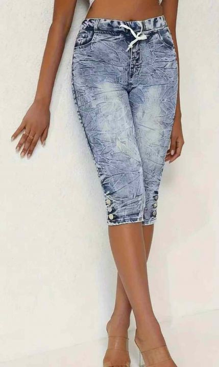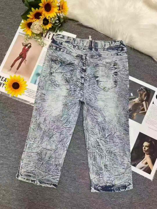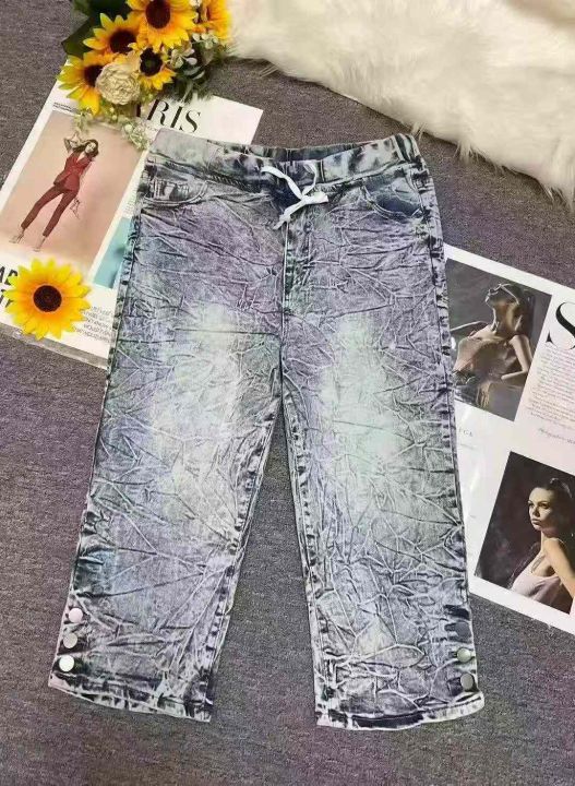 夏季复古蓝洗水棉外贸原单男女同款松紧腰牛仔中裤,独立包装,码数M--2XL码,400件左右,全清5.8元超低价秒杀!分货加一!