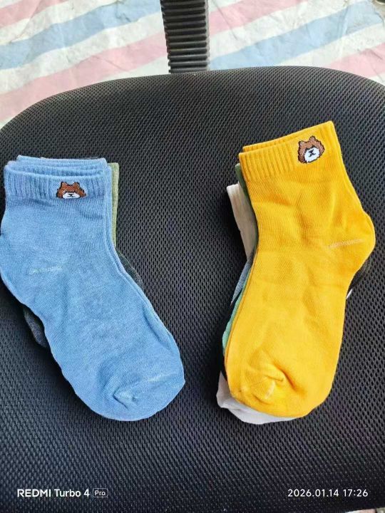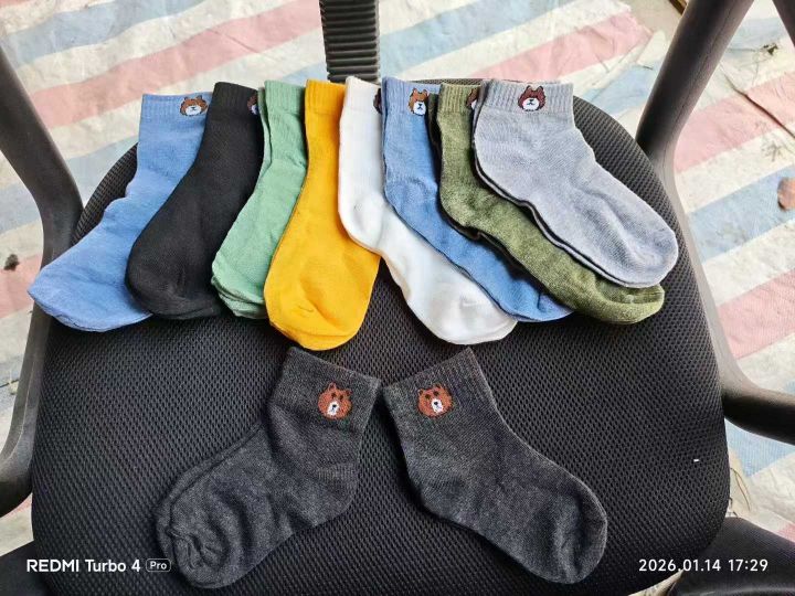 混色纯棉小熊全家福袜子1000双,10双/包(含8双成人袜,2双儿童袜)拉绳袋包装。