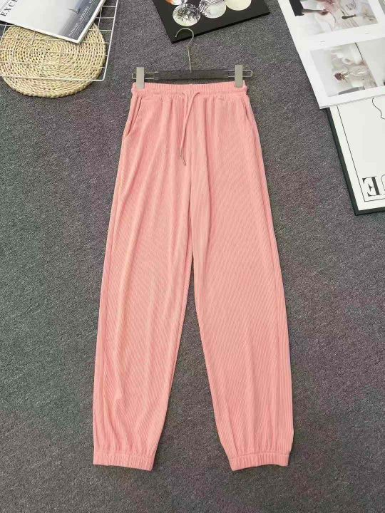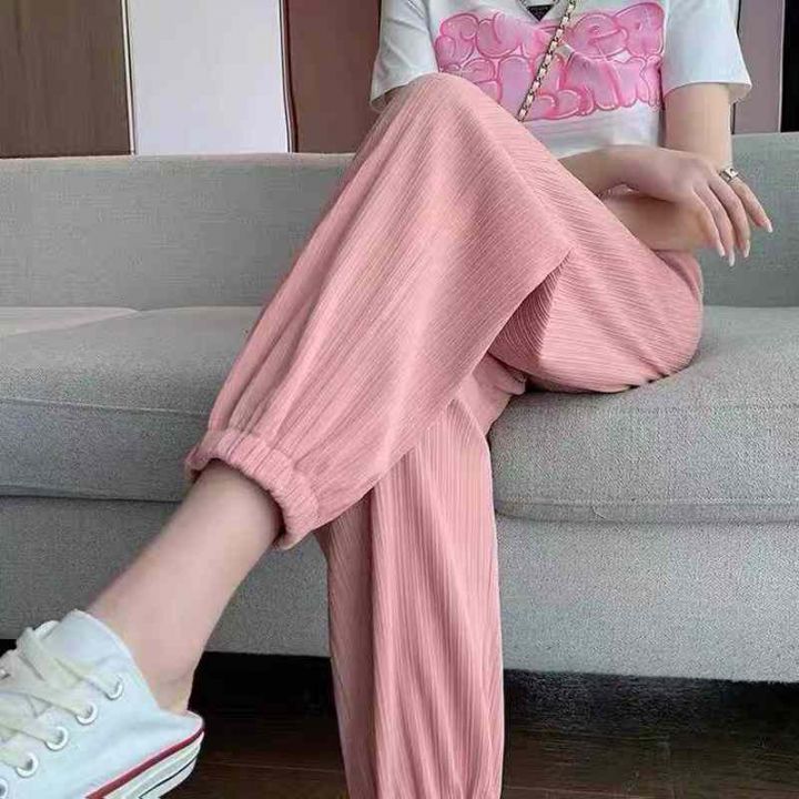 ☕️大码冰丝运动裤女夏季胖mm宽松高腰束脚灯笼哈伦裤子510条全清8.8元,分货9.9元 ,码数S到XXL,单款2色,独立包装,裤子有口袋[庆祝][庆祝][庆祝]