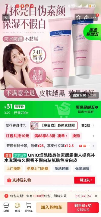 UNIO烟酰胺身体素颜霜懒人提亮补水滋润持久留香不假白...