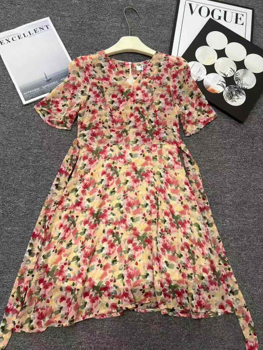 ☕️法式碎花连衣裙夏季新款高级感收腰显瘦v领雪纺连衣裙150件全清9.8元,分货10.8元,码数S到XXL,独立包装,每件都有带内衬[庆祝][庆祝][庆祝]