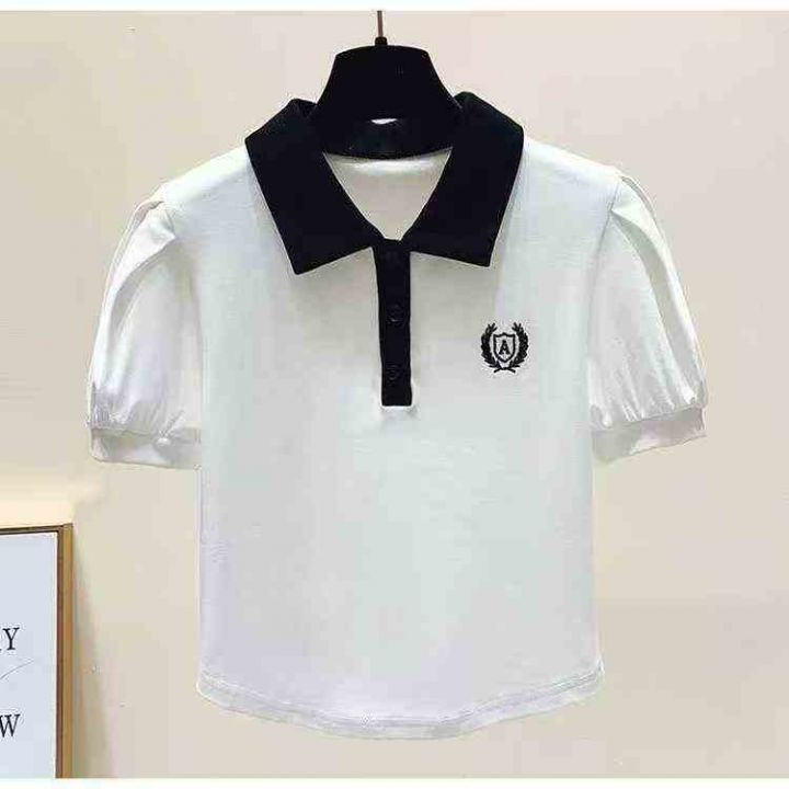 40件,撞色polo夏季2025T恤短袖新款设计感小众刺绣短款上衣,独立包装,全...