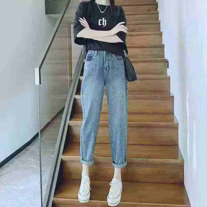 网店下架新款高品质洗水高腰宽松显瘦牛仔老爹哈伦裤,独立包装带吊牌,码数...
