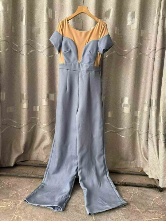 外贸出口 高品质宫廷短袖高个子喇叭阔腿连体裤 明星走秀连衣裤,独立包装,...