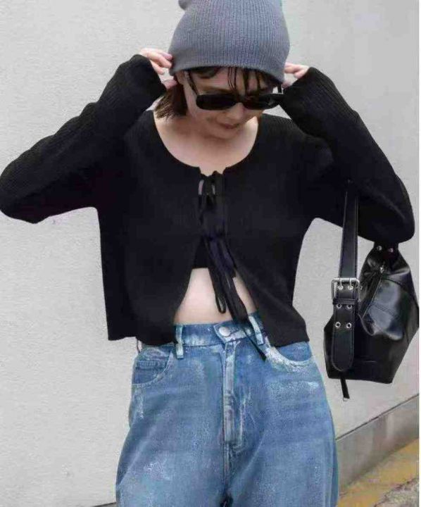 秋季新品小众复古老钱风百搭系带针织毛衣开衫,独立包...