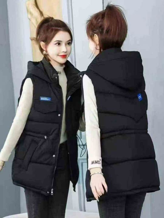 秋冬新款连帽保暖羽绒棉马甲外套女韩版收腰显瘦,(帽...