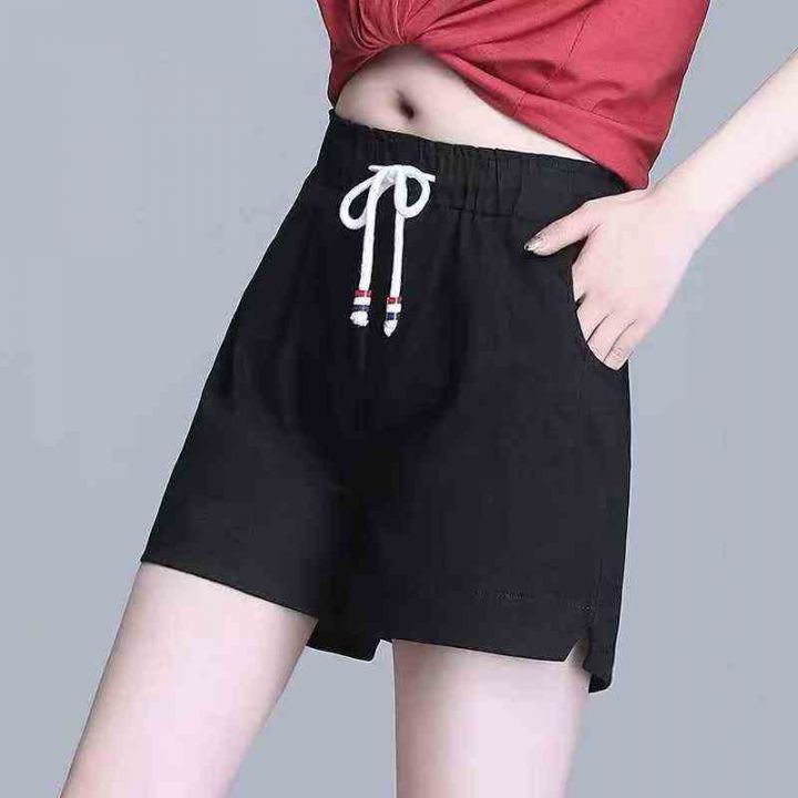 纯棉休闲短裤女夏新款韩版显瘦松紧腰运动宽松阔腿裤热裤,码数S-L,数量450...
