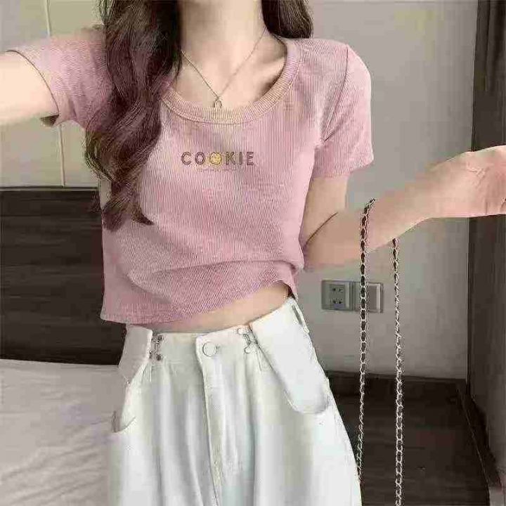 精梳螺纹正肩短袖T恤女甜辣风修身短款辣妹上衣,独立包装,码数2-6,弹力大,数量1227件,分货加1,货号119#28