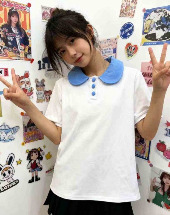 301件,纯棉夏季清新宽松遮肉套装女新款学院风POLO领T恤衫,独立包装,码数M-2XL,全清5.8元,分货➕0.5