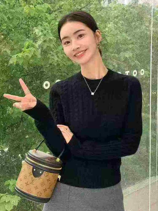 76件网红款麻花套头毛衣女内搭秋冬高级感修身圆领打底...