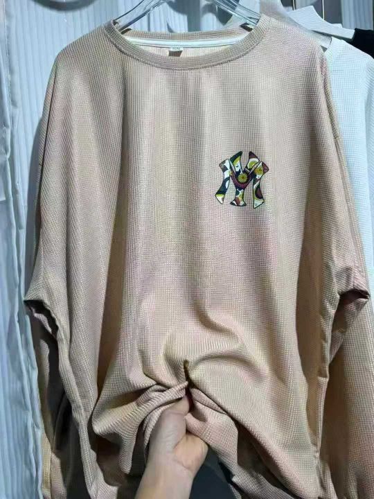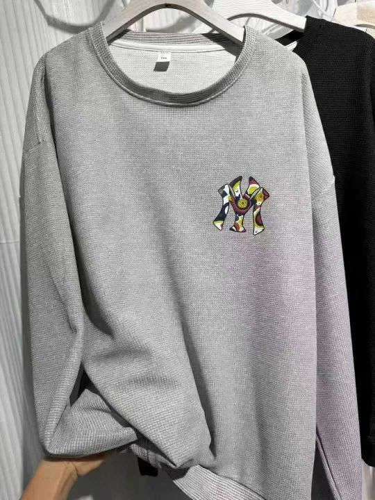 6.8清457件国潮华夫格圆领男士潮流休闲长袖春秋宽松显...
