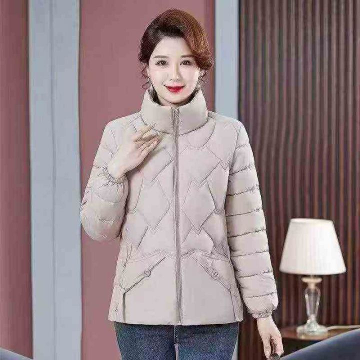 秋冬羽绒棉衣中老年妈妈装女士洋气立领时尚轻薄棉服(...