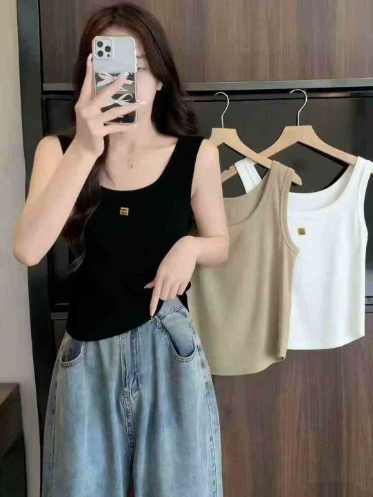 800件纯欲褶皱吊带背心女夏季带胸垫显瘦内搭打底外穿修身美背短款上衣 独...
