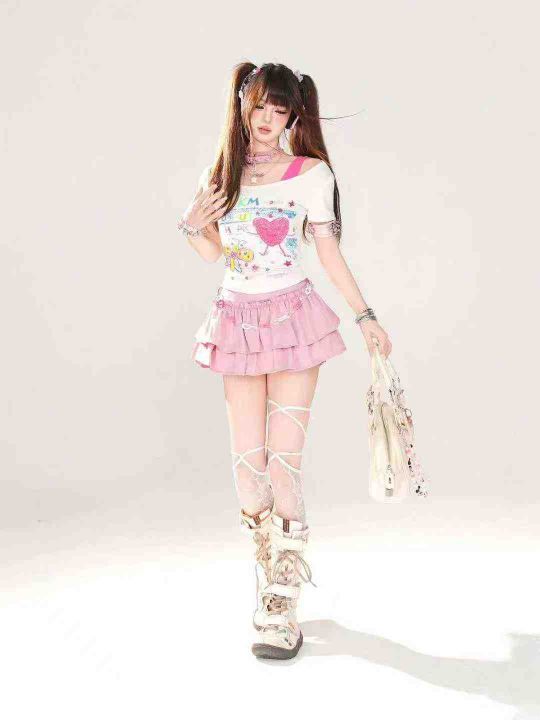 [月亮]:6.9清542件/分货7.5[月亮]:夏季新款涂鸦印花露肩设计纯棉辣妹上衣...