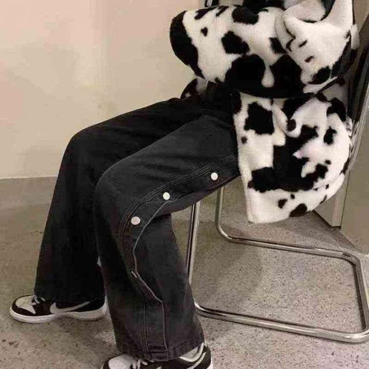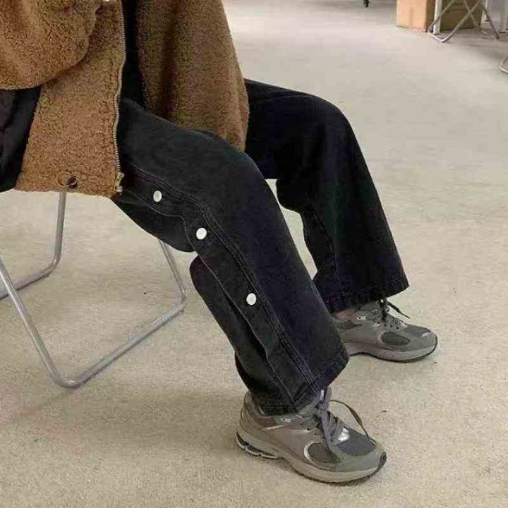 YKK拉链复古直筒阔腿牛仔裤女高腰显瘦拖地裤子,单款单色,抓绒款(薄绒)...