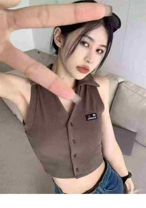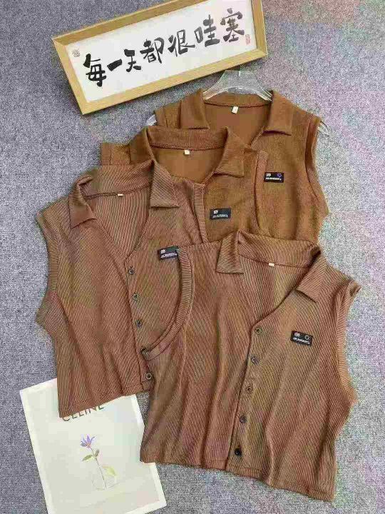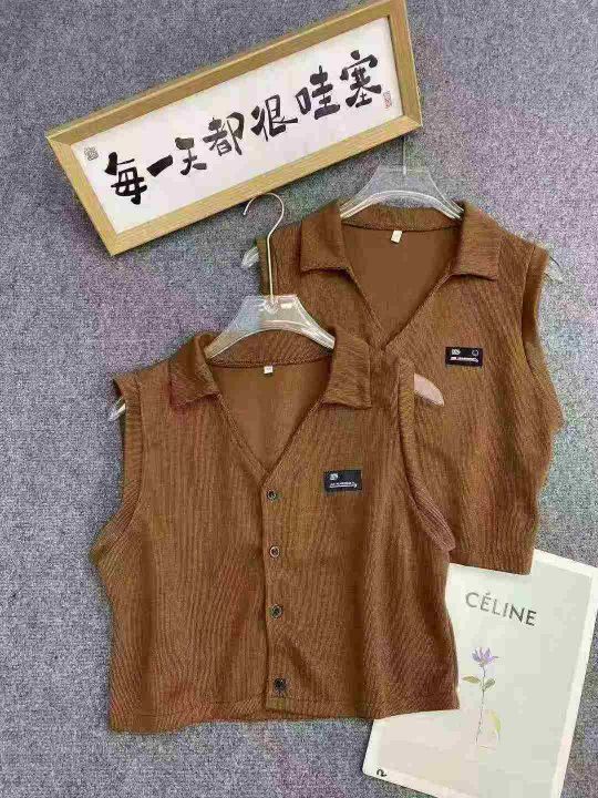 美式复古靓妹背心317件5.9Polo领,胸口小标,两种面料...
