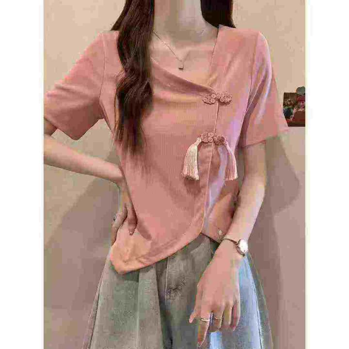 电商仓回收662件国风新中式精致盘扣不规则靓妹短袖T恤上衣,码数S-4XL。款式不错,面料柔软舒适有弹力,独立包装,分货➕0.5