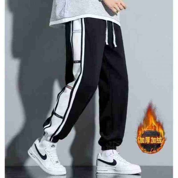侧边条纹灯芯绒男冬季加绒加厚潮牌宽松束脚裤子,整款三色,独立包装M-3XL...