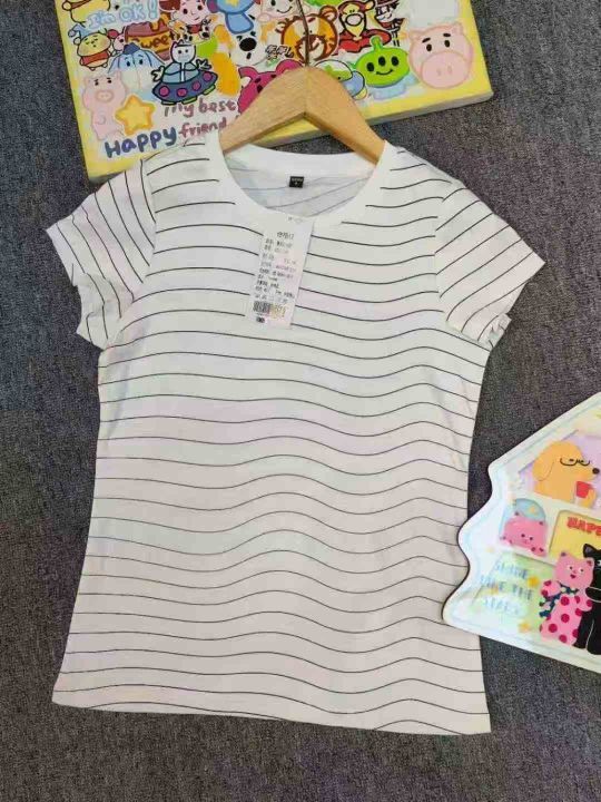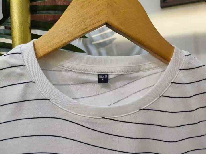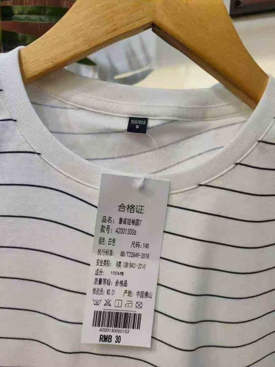 623件夏季中大童细条纹纯棉圆领短袖T恤上衣 单款单色,包边包条 100%棉,码数130-140-150 (基本140 150码)独立包装带吊牌。