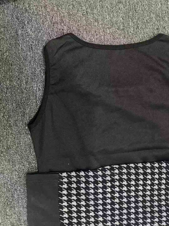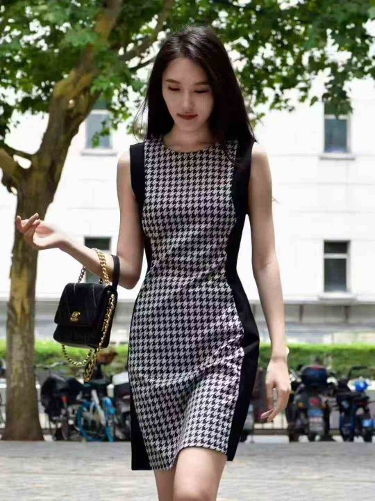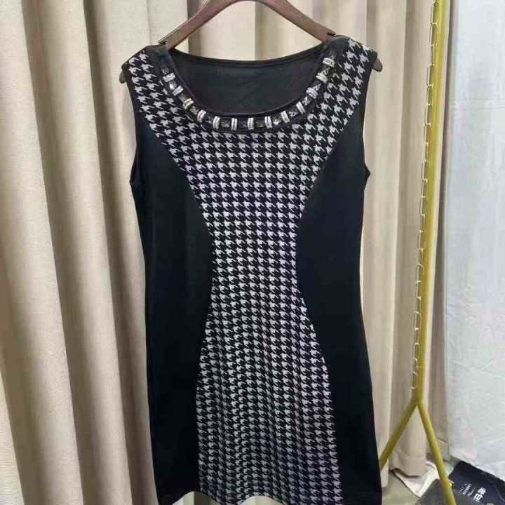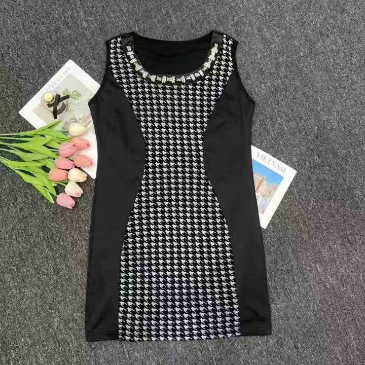 夏季新款立体剪裁拼接撞色带镶钻千鸟格修身圆领女士无袖背心连衣裙 独立包装带吊牌 数量850件 码数XL-3XL 全清5.5 分货加0.5