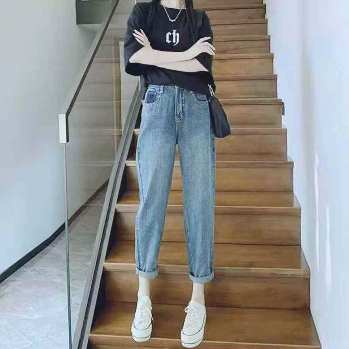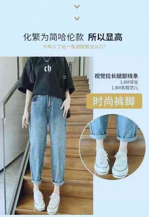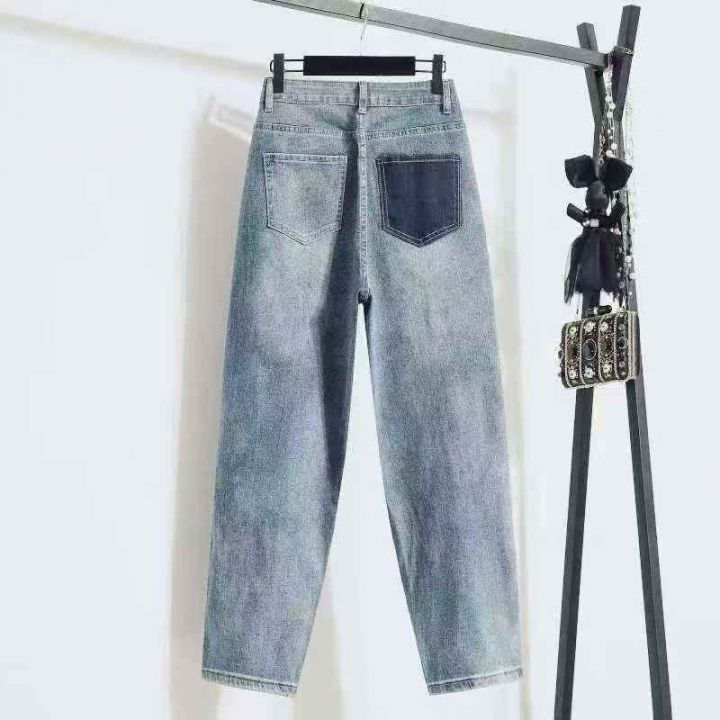网店下架新款高品质洗水高腰宽松显瘦牛仔老爹哈伦裤,...
