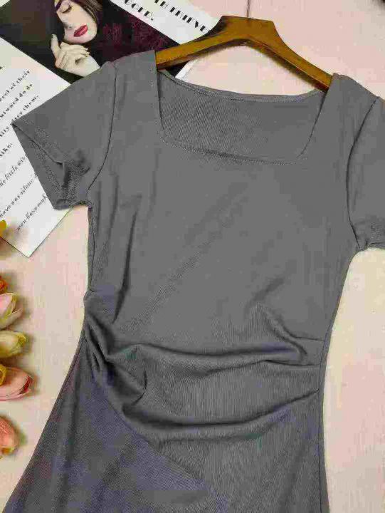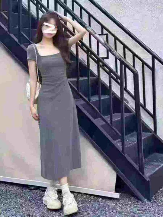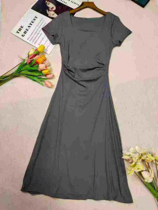 [福]纯欲风方领短袖连衣裙收腰褶皱a字裙潮,总数量:429条,码数:1-6码,独立包装,全清7.8