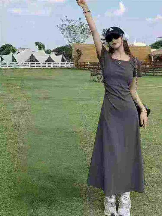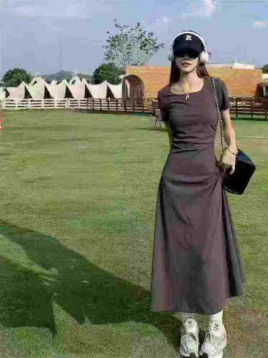 [福]纯欲风方领短袖连衣裙收腰褶皱a字裙潮,总数量:42...