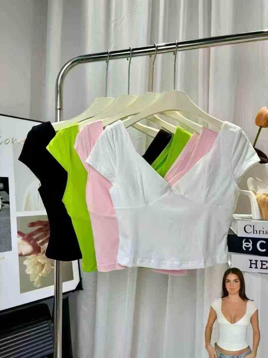 19000多件纯欲性感低胸v领泡泡短袖t恤女夏季甜辣妹绝美显身材修身上衣,尺码S~4XL,面料软糯高弹力,福利秒杀3.8