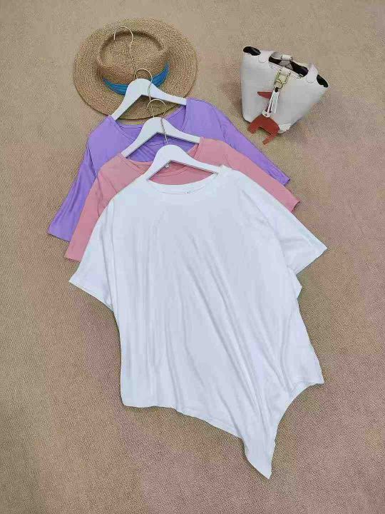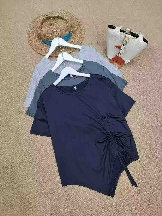 [月亮]:不规则抽绳收腰设计休闲宽松T恤