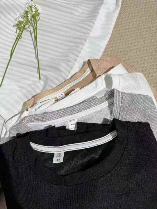 457件国潮华夫格圆领男士潮流休闲长袖春秋宽松显瘦上衣T恤打底衫!码数:M~5XL!独立包装货品干净!